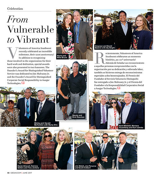 Volunteers of America Southwest recently celebrated an incredible milestone, their 121st anniversary! In addition to recognizing those involved in the organization for their hard work and dedication, special awards were also presented to two honorees. The Founder’s Award for Distinguished Volunteer Service was dedicated to Jim Mulvaney Jr. and the Founder’s Award for Distinguished Corporate Social Responsibility to Ausgar Technologies.